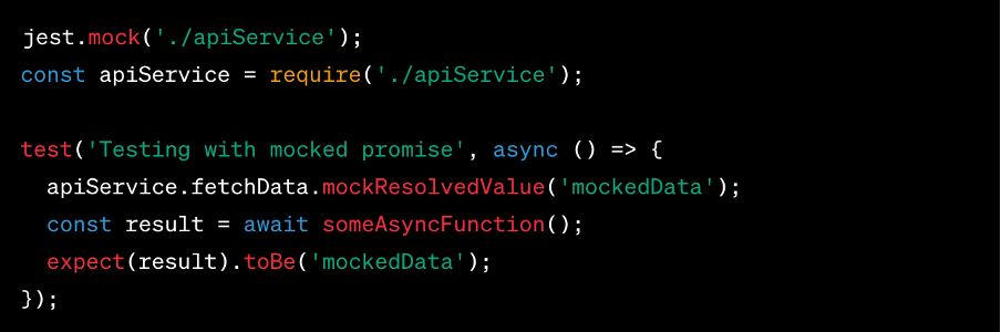 When testing code that relies on external services, such as API calls, it's important to isolate the behavior of your code from the external dependencies. Jest's mocking capabilities allow you to replace actual promises with mock implementations:
